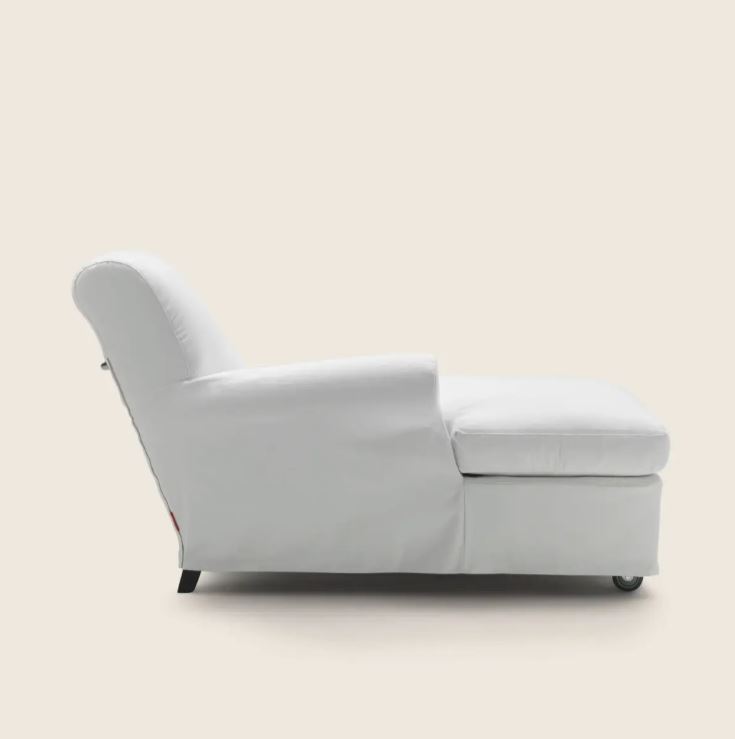 Модель NONNAMARIA 1985 года. Комфортная домашняя кушетка с традиционными формами, но лишенная классического орнамента. Колесики со стопорами и удобная ручка на спинке.