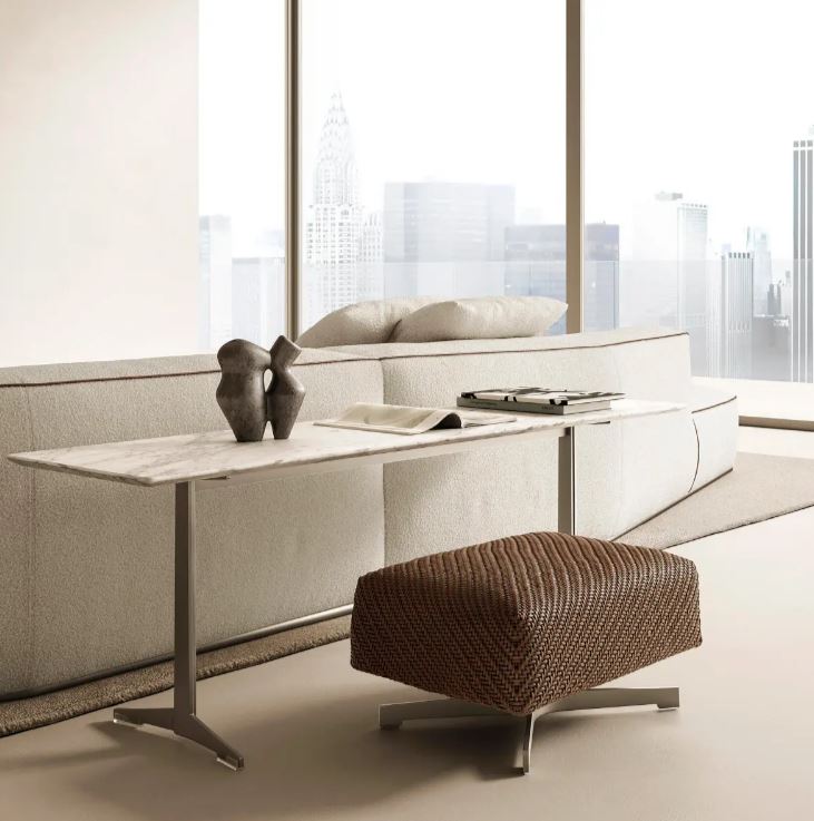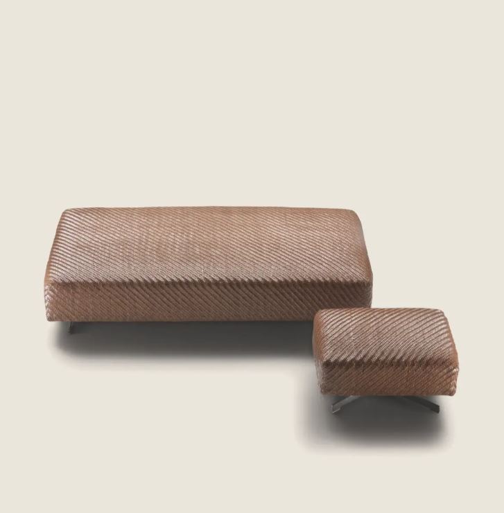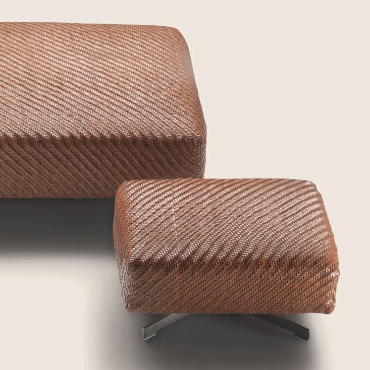 Простой по форме, но с роскошной обивкой из кожаного плетения: вот сущность пуфа Filicudi.