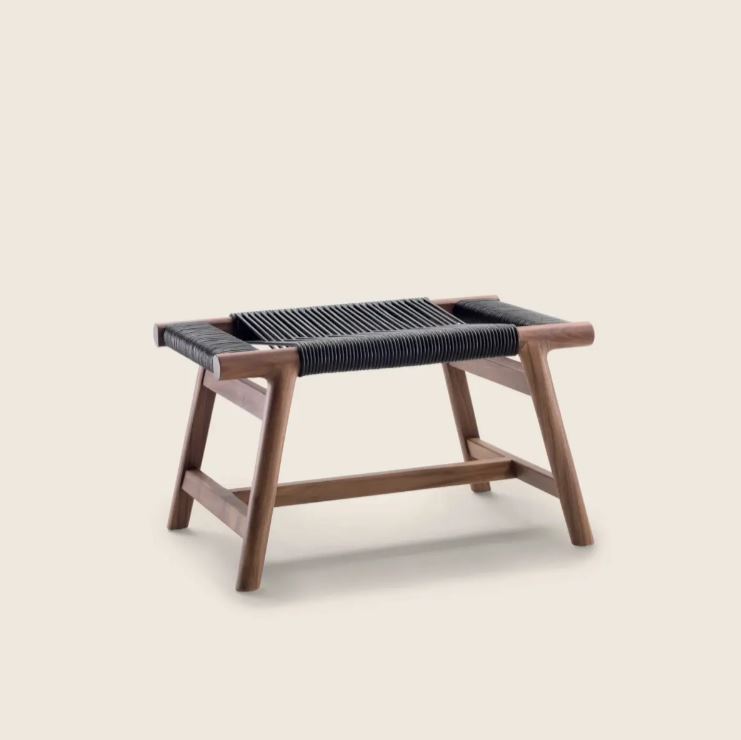 Этот пуф имеет малые размеры.Каркас пуфа целиком изготовлен из массива дерева в одном из множества оттенков цветовой палитры. Верхняя часть украшена оригинальным и изысканным плетением.
