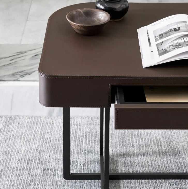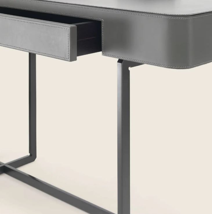 Деревянная столешница письменного стола Marmaduke обтянута кожей и имеет практичный выдвижной ящик.