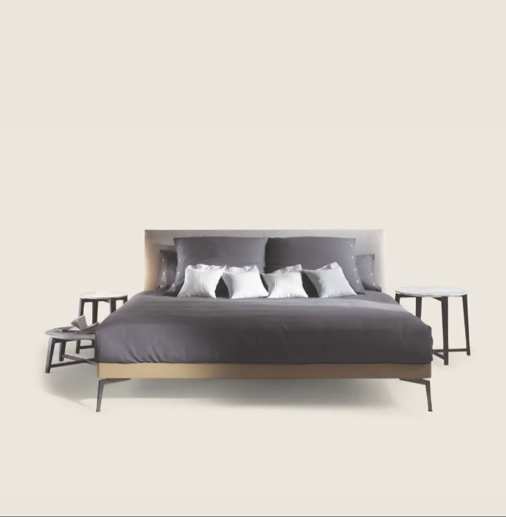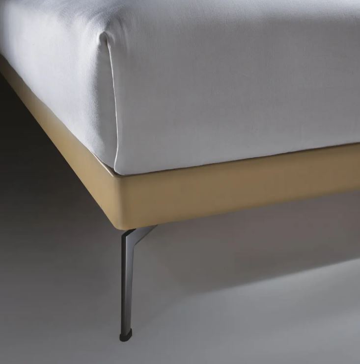 Кровать Feel Good, фабрика Flexform, модель 2012 года, дизайнер ANTONIO CITTERIO. Литые алюминевые ноги и стройная полоса из кожи по периметру. Вечный классицизм в современной форме.