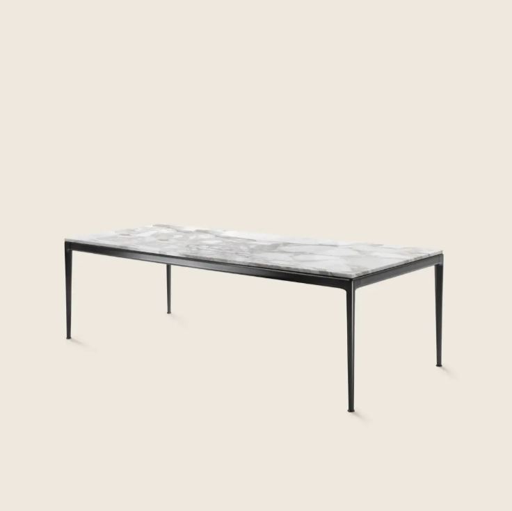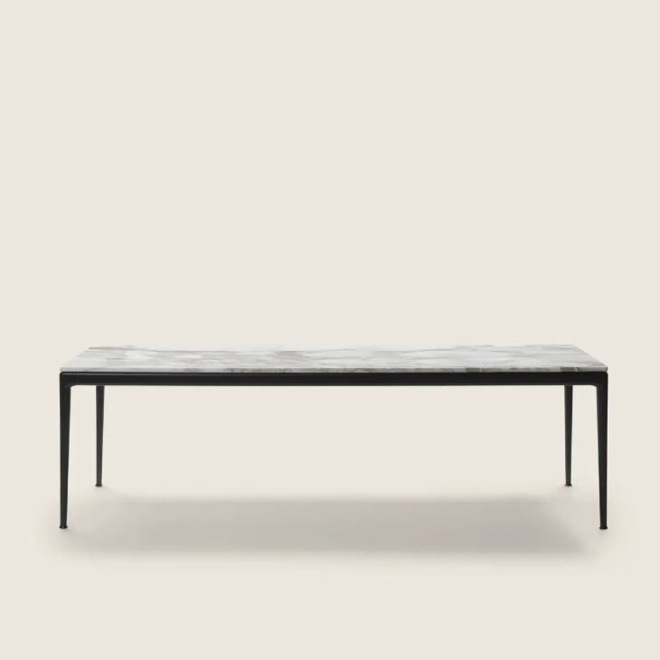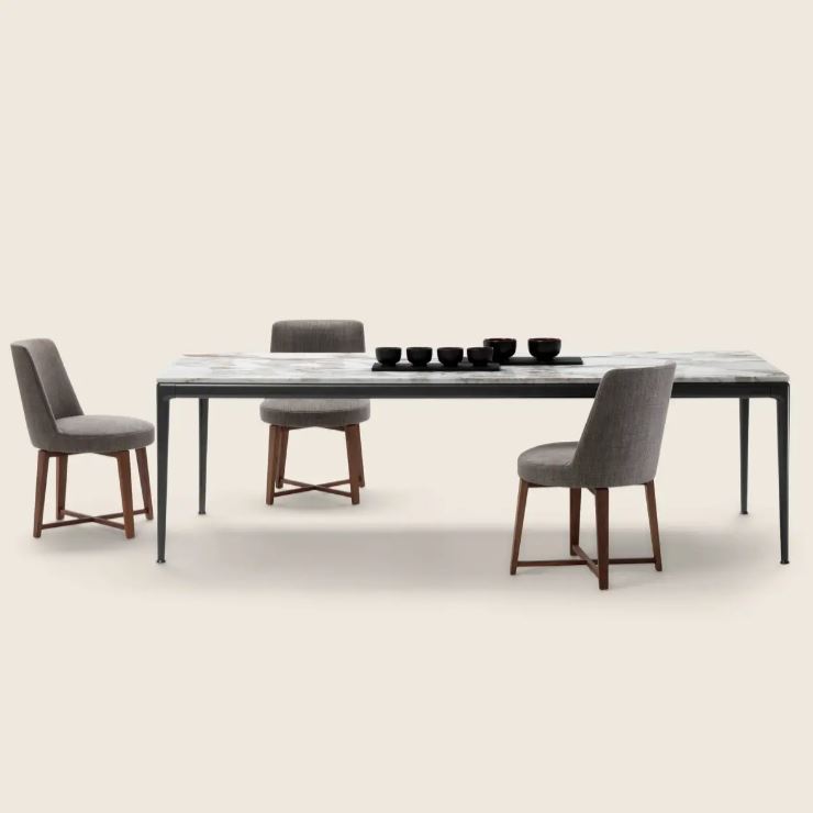 Благодаря тонким ножкам стол Pico выглядит динамичным и очень легким. Они выполнены из литого под давлением алюминия и предлагаются с разной, но одинаково изысканной отделкой, а столешница с закругленными углами изготавливается из различных сортов мрамора или из шпонированного дерева, тонированного в разные оттенки.