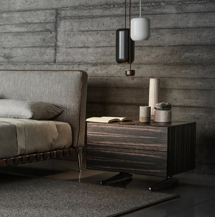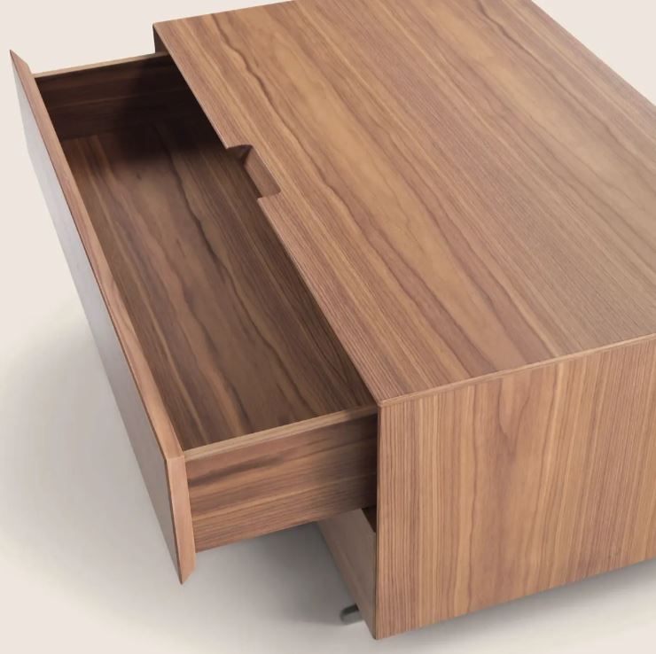 Для тумбочек Piuma используется шпон из редких и дорогих пород различных оттенков на выбор. Ручки заменены срезом в корпусе под 45градусов.