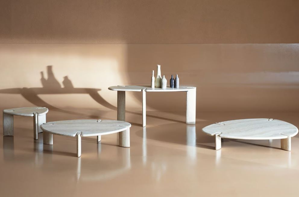 В коллекции Isamu Stone от Роберто Лаццерони для Baxter воспевается выразительная сила натурального камня. И стол, и приставной столик объединяет скульптурная эстетика: мраморная столешница со скругленными углами изящно опирается на массивные деревянные ножки, которые точно вставляются в вырезанные пазы, достигая идеальной гармонии формы и материала. Каждая мраморная плита обрабатывается таким образом, чтобы сохранить уникальные тональные вариации и текстуру живого камня, поддерживая его подлинность и тактильную насыщенность
