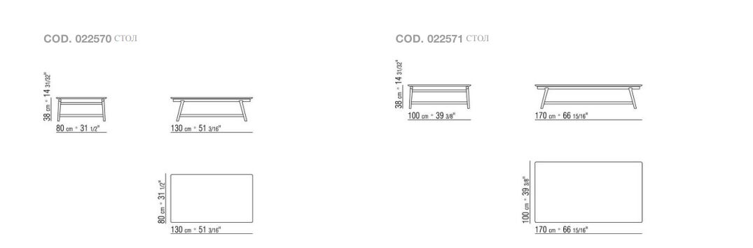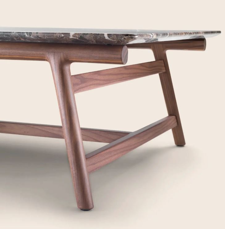Основание столиков целиком изготовлено из массива дерева в одном из множества оттенков цветовой палитры. Столешница также может быть выполнена из массива дерева или можно сделать ставку на контраст, выбрав для столешницы мрамор.