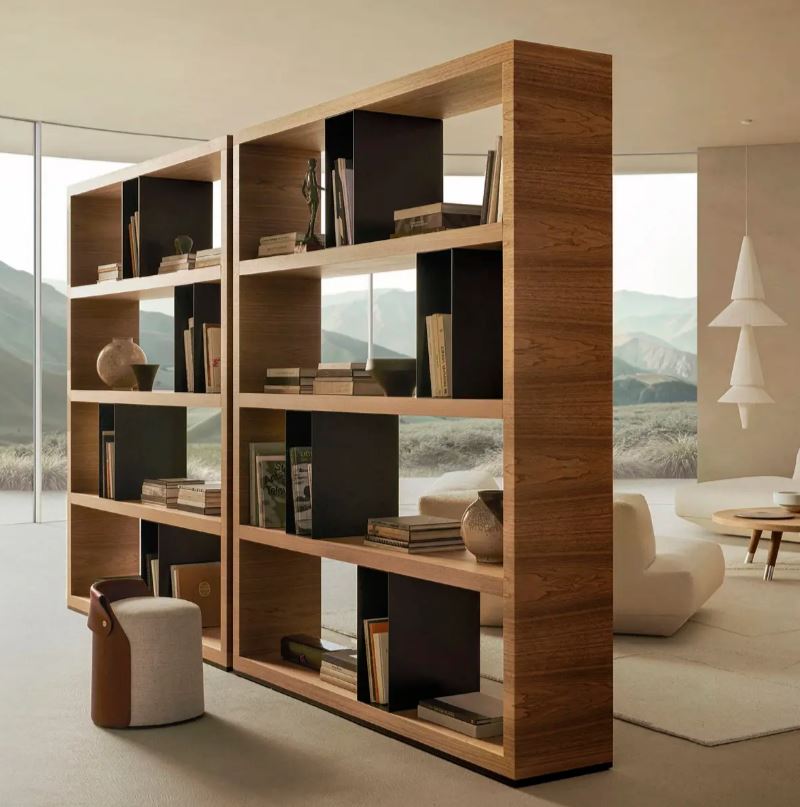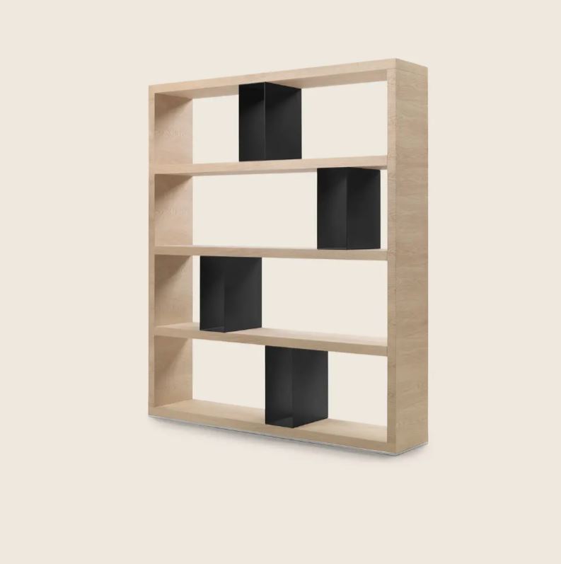 Книжный шкаф Braidense имеет деревянный каркас, отличающийся значительной толщиной, передает идею прочности и физического присутствия, а отсеки из гнутого металлического листа нарушают симметрию полок, создавая изысканную игру контраста материалов.