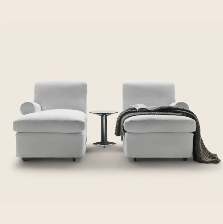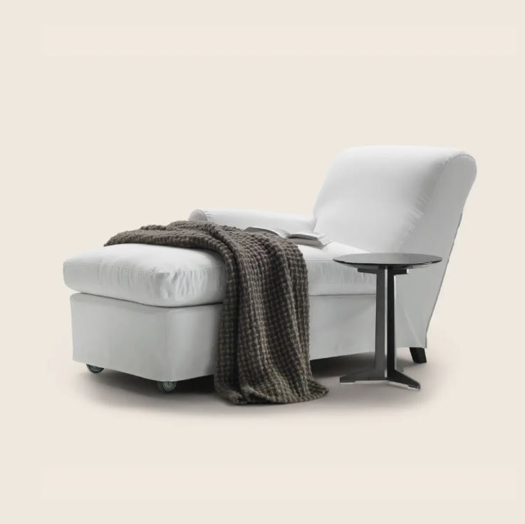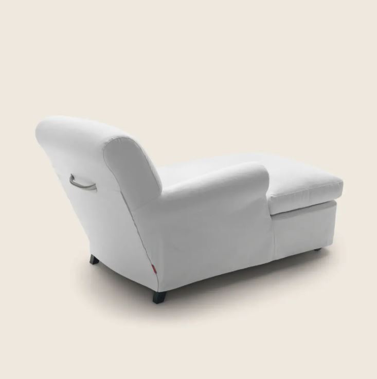 Модель NONNAMARIA 1985 года. Комфортная домашняя кушетка с традиционными формами, но лишенная классического орнамента. Колесики со стопорами и удобная ручка на спинке.