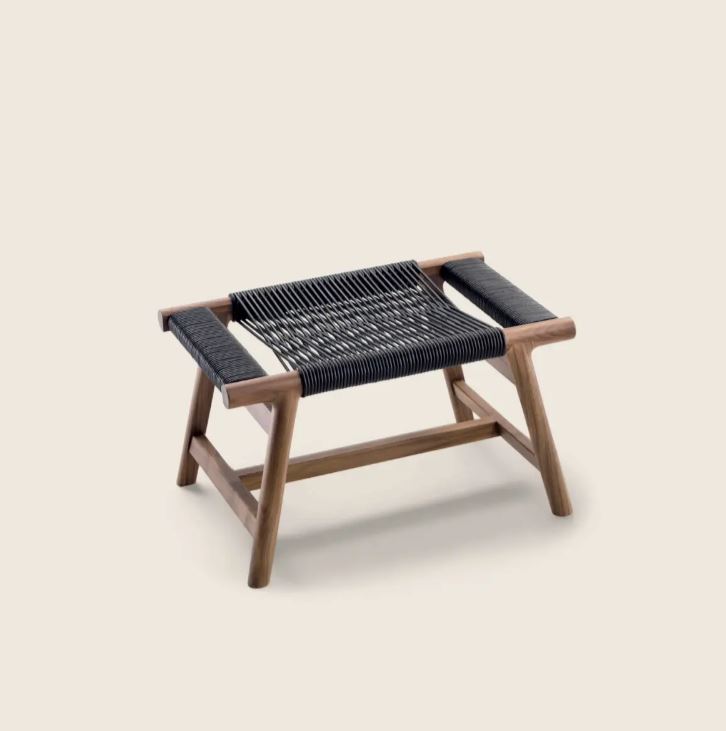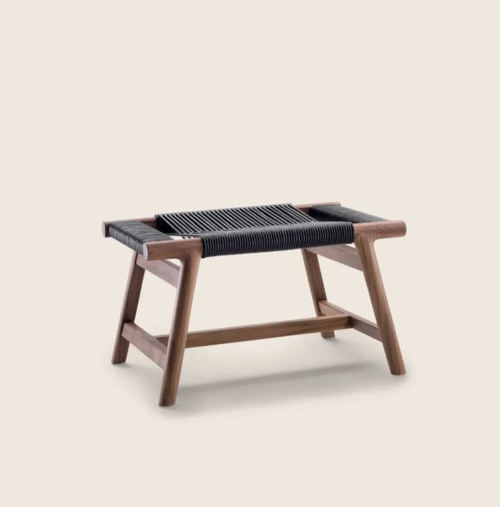 Этот пуф имеет малые размеры.Каркас пуфа целиком изготовлен из массива дерева в одном из множества оттенков цветовой палитры. Верхняя часть украшена оригинальным и изысканным плетением.