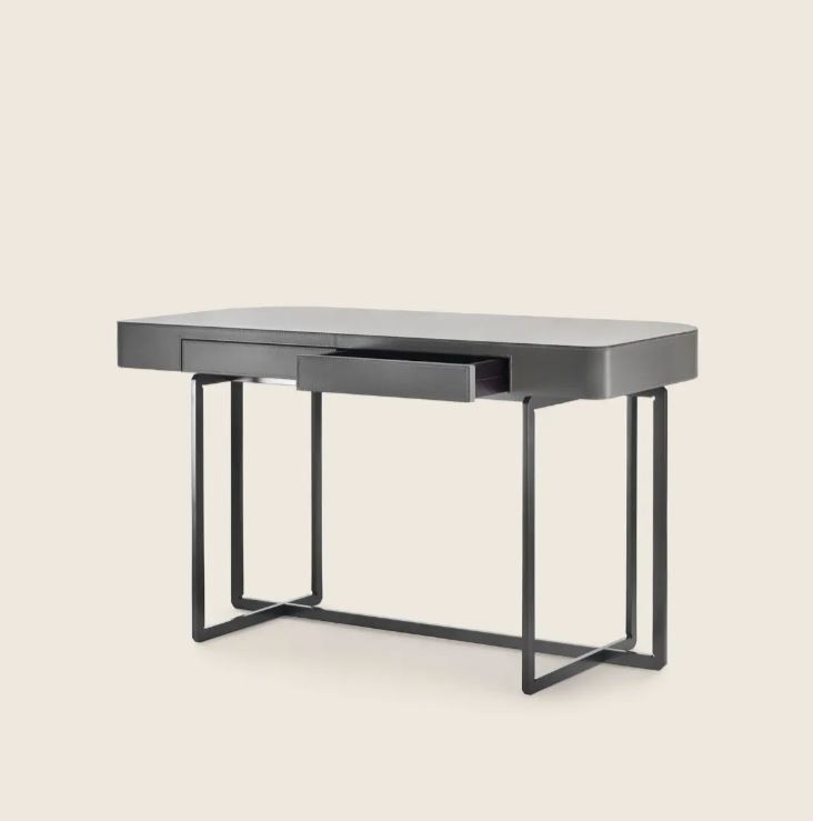 Деревянная столешница письменного стола Marmaduke обтянута кожей и имеет практичный выдвижной ящик.