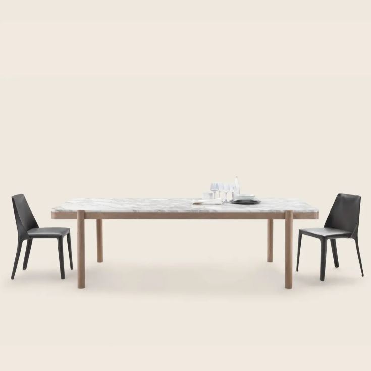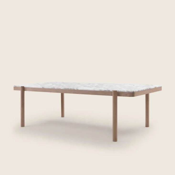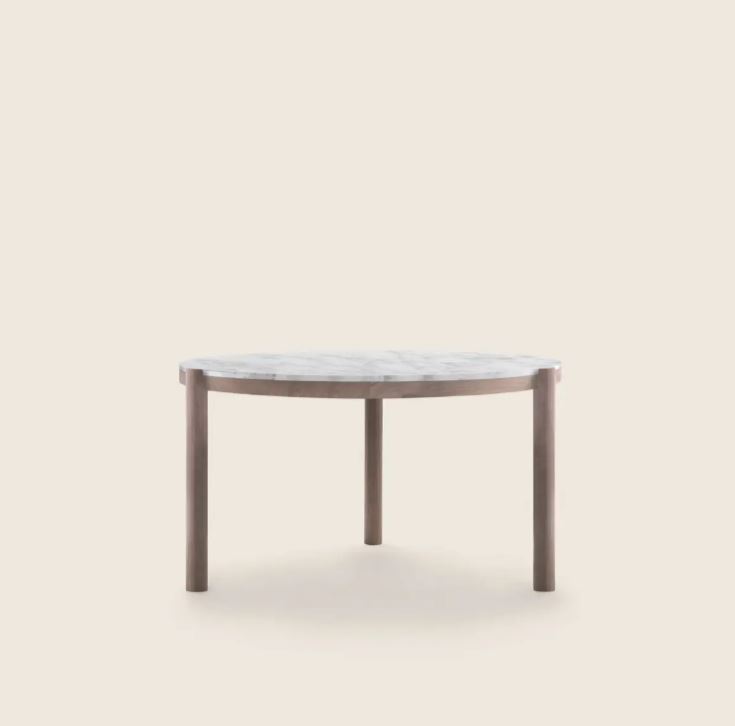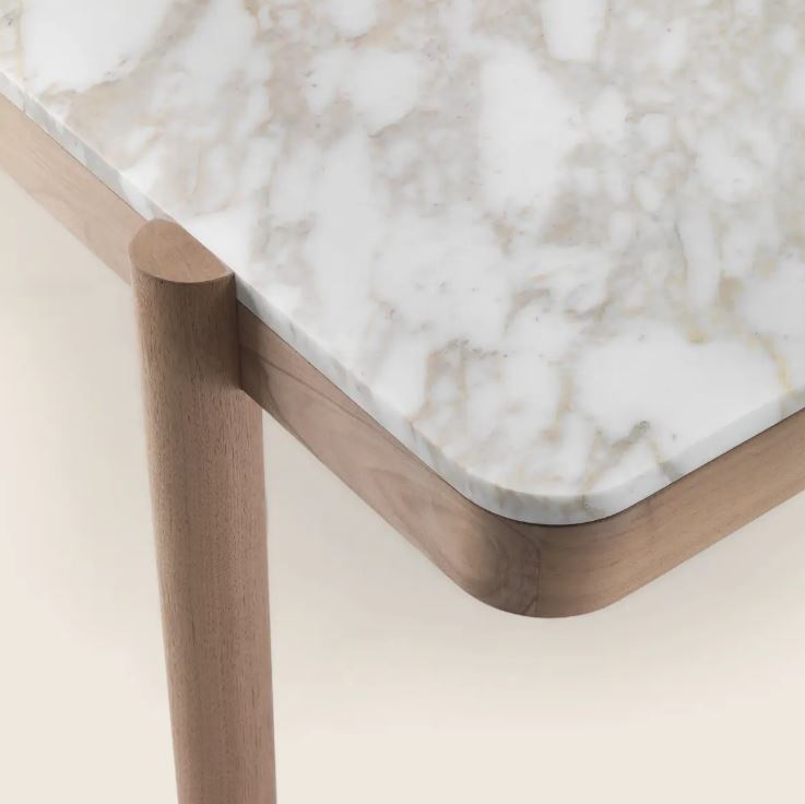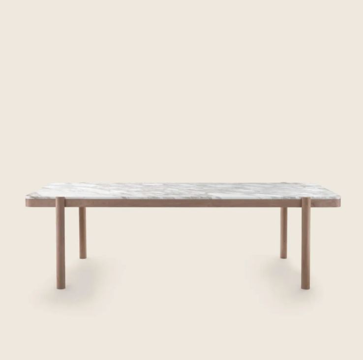 Flexform предлагает ряд оригинальных комбинаций материалов: каркас из массива дерева, тонированного в разные цвета, и столешница из мрамора одного из ценных сортов.