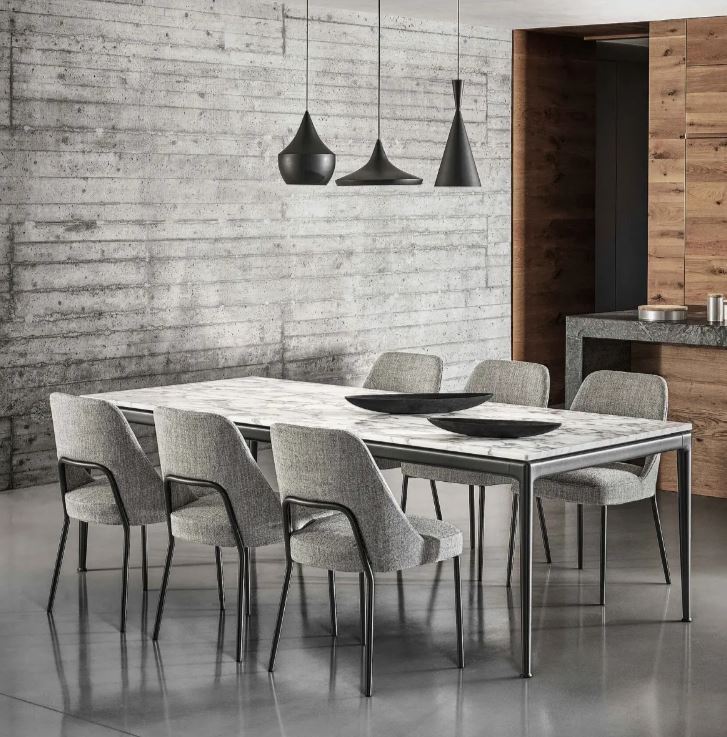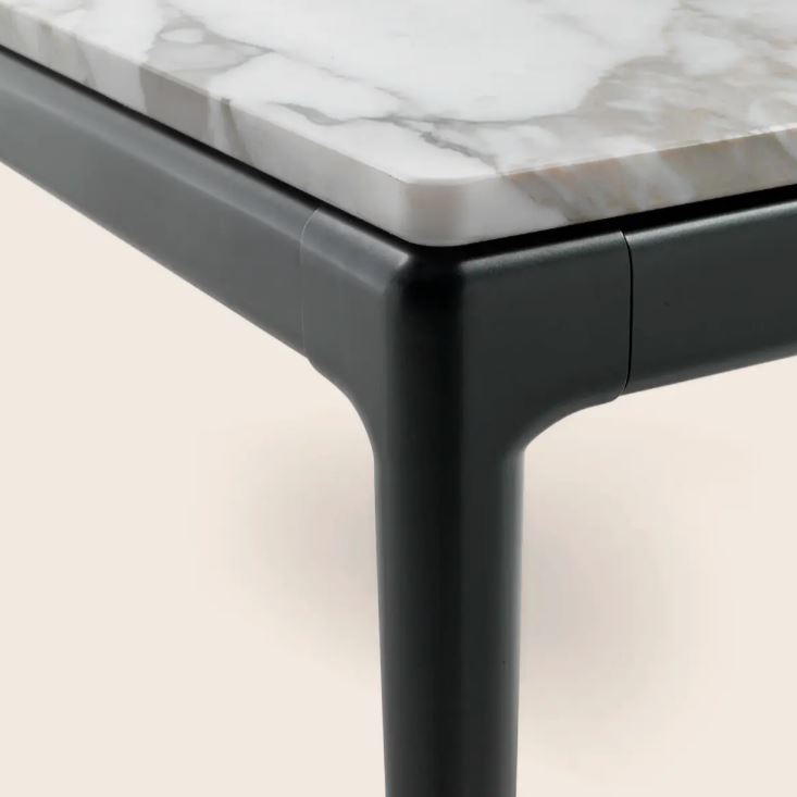 Благодаря тонким ножкам стол Pico выглядит динамичным и очень легким. Они выполнены из литого под давлением алюминия и предлагаются с разной, но одинаково изысканной отделкой, а столешница с закругленными углами изготавливается из различных сортов мрамора или из шпонированного дерева, тонированного в разные оттенки.