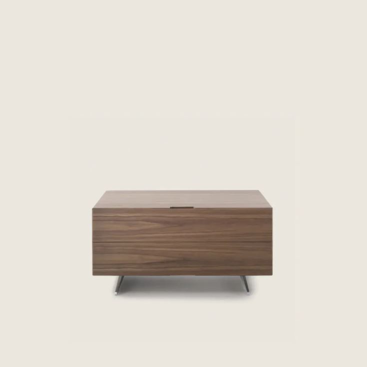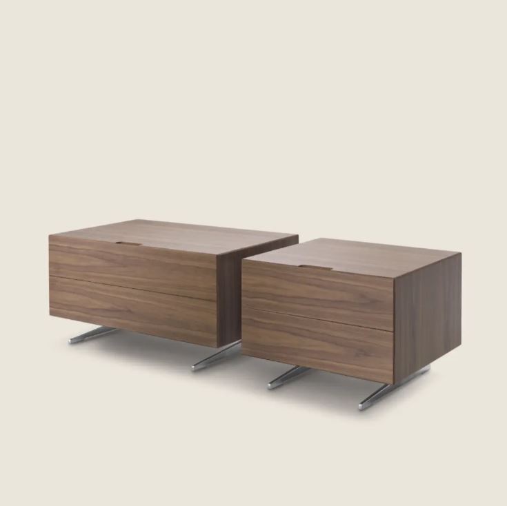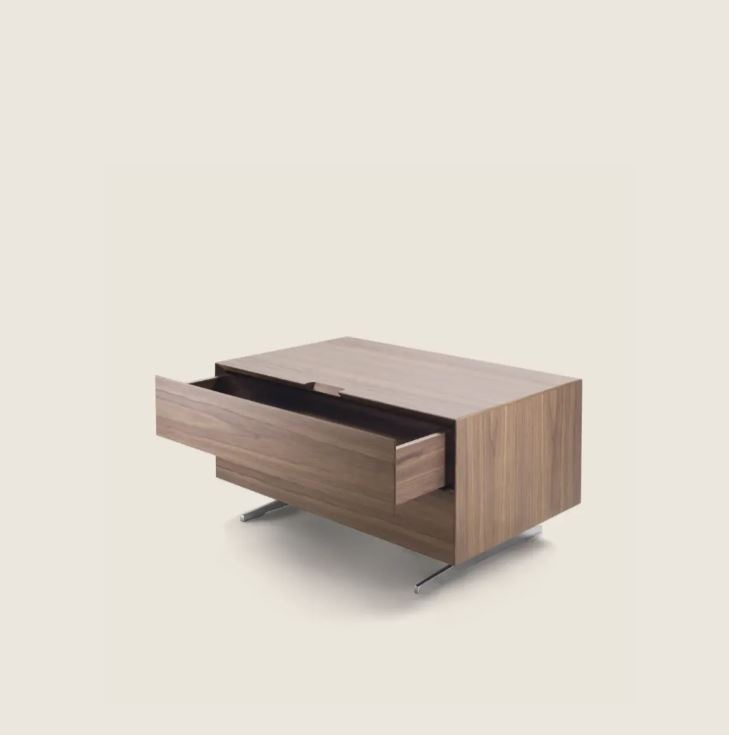 Для тумбочек Piuma используется шпон из редких и дорогих пород различных оттенков на выбор. Ручки заменены срезом в корпусе под 45градусов.
