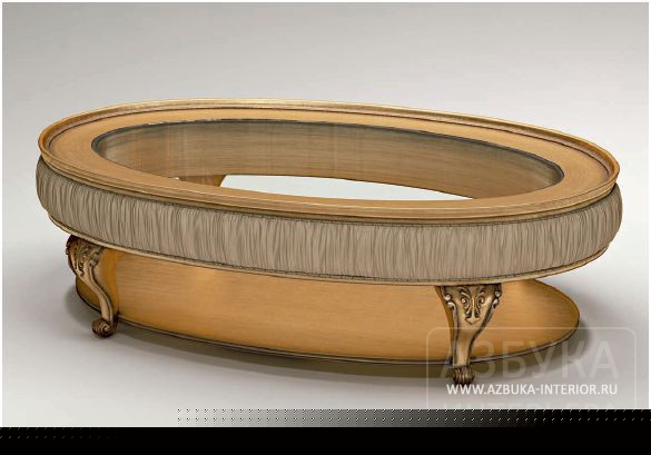 Журнальный столик Passepartout фабрики Bruno Zampa. Ноги из дерева с ручной резьбой, стеклянная столешница. Возможны также столешница из мрамора или дерева. Декоративное плиссе из ткани.