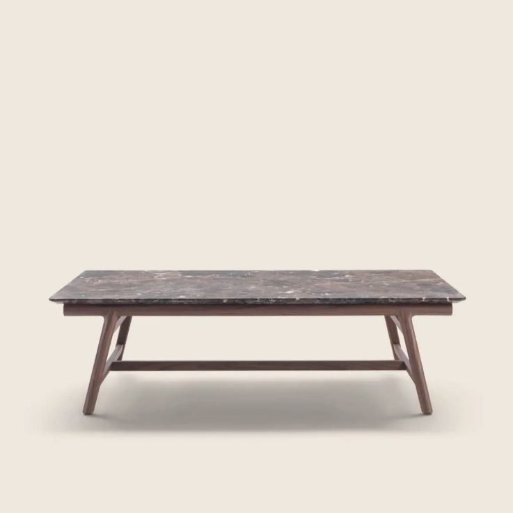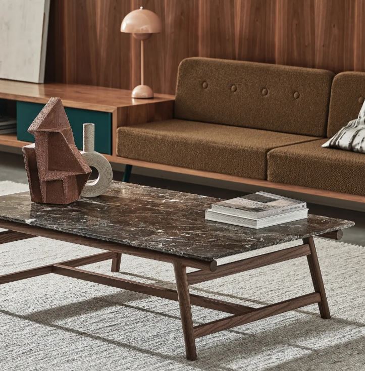 Основание столиков целиком изготовлено из массива дерева в одном из множества оттенков цветовой палитры. Столешница также может быть выполнена из массива дерева или можно сделать ставку на контраст, выбрав для столешницы мрамор.